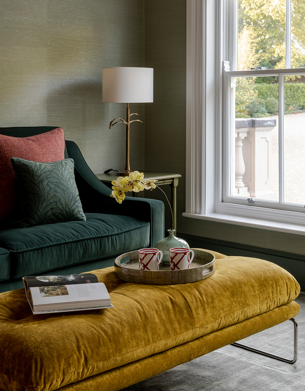 Steeped in traditional grandeur but realized through well-appointed modernity, this design plan stemmed from the impressive principal suite—extending the space toward the tree canopy to welcome in morning sunlight.